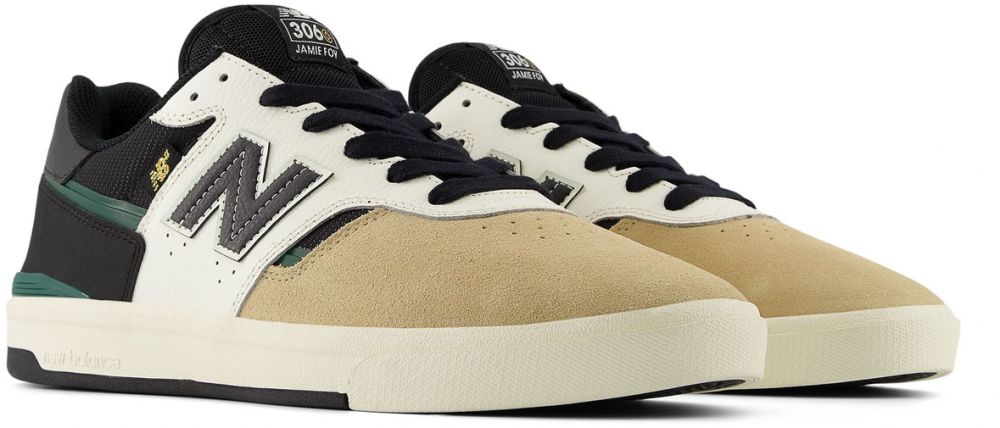 Boční strany zdobí výrazné kontrastní kožené emblémy s písmenem „N“ a na jazyku je tkaná etiketa s nápisem „Jamie Foy 306“.
