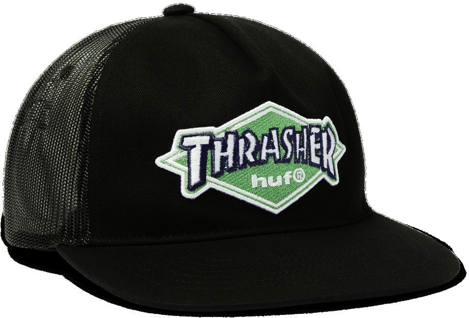 Kšiltovka huf x thrasher logo twill truc - černá