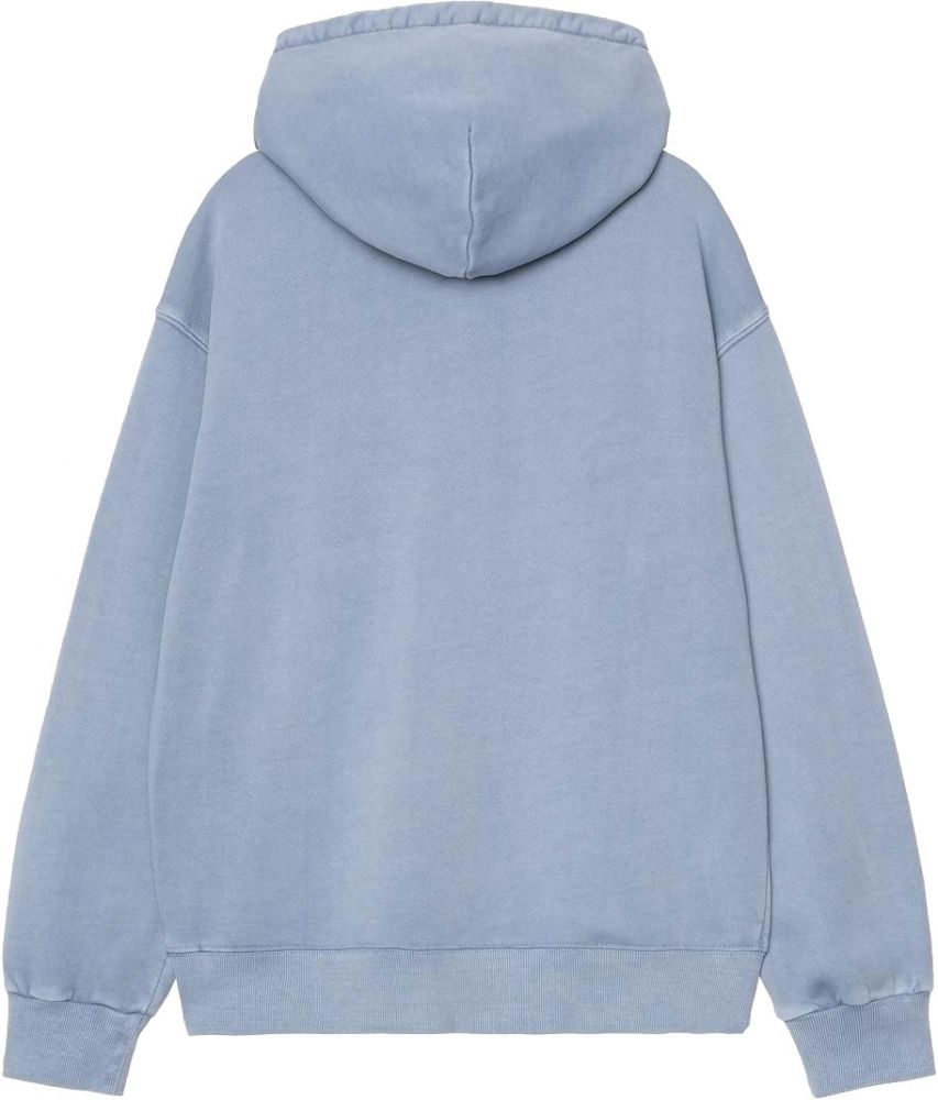 Tato mikina s kapucí je vyrobena z vysokogramážního bavlněného žerzeje. Oděv byl pigmentově obarven pro sytější barvy. Má klokaní kapsu a diamantem prošívanou kapuci s polstrovanou podšívkou. Tento kus má odvážný "balonový" střih, který je trochu volnější a krabicovitější, ale vyznačuje se také spadlými rameny a žebrovanými manžetami. Je zakončena klasickým tkaným štítkem Carhartt WIP na levé straně hrudi.